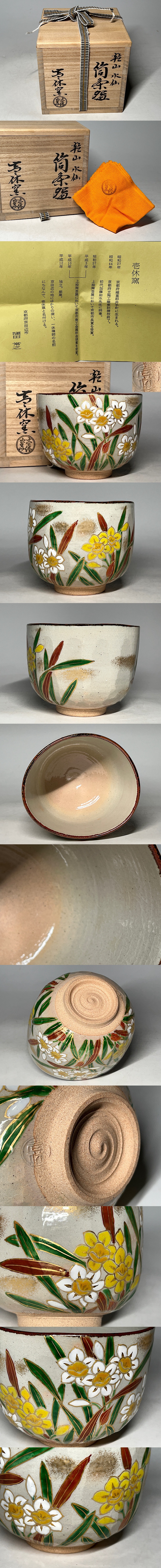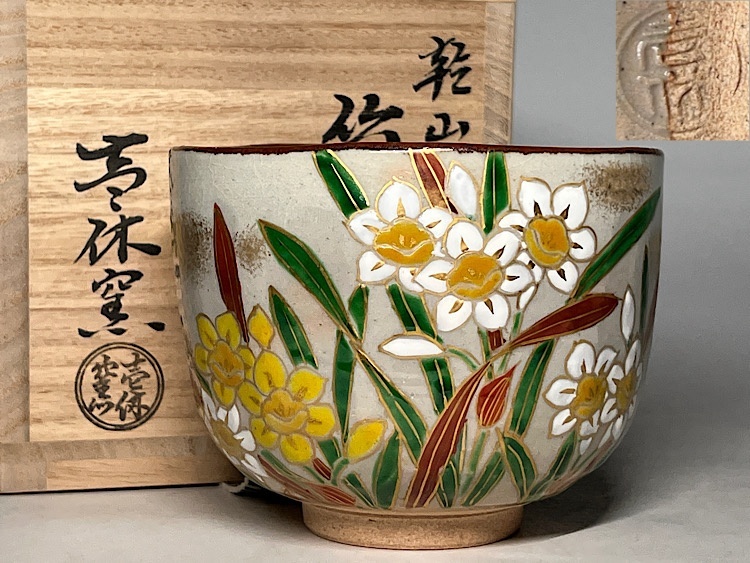 - 【瑞】窪田常之作 壱休窯 乾山 水仙 筒茶碗 共箱 共布 栞