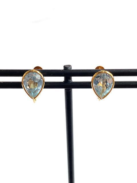 - 【即決】 K18 アクアマリン イヤリング 宝石 ジュエリー イエローゴールド YG アクセサリー 水色 色石 1.5g