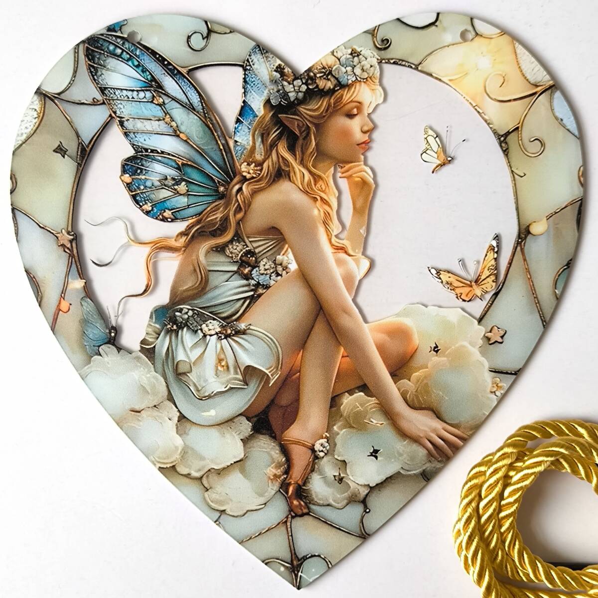 - 【妖精と満月・花・フェアリー・ハート型】アクリルプレート 飾り サンキャッチャー オブジェ お洒落 壁や窓辺の飾りに◎◎