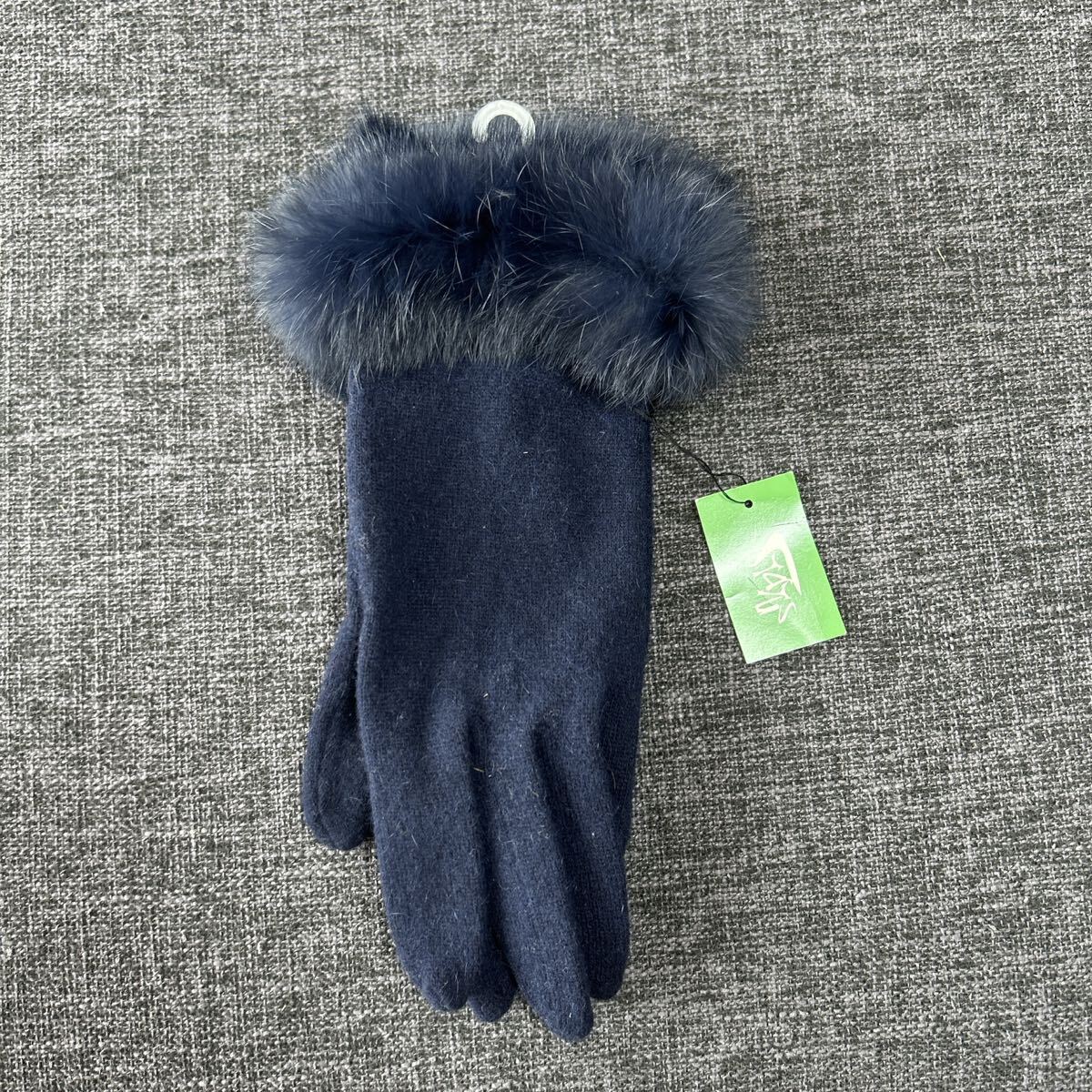 - 新品タグ付き リアルファー付き 手袋 ネイビー