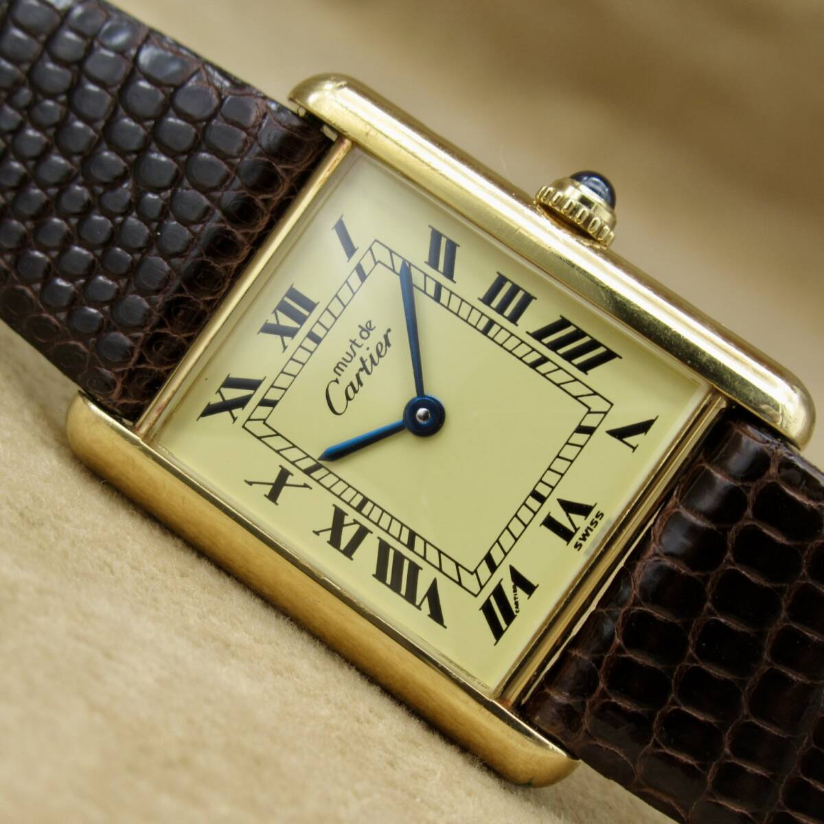 > Cartier カルティエ W1002753 マストタンク LM 925 ヴェルメイユ 金 レクタン ローマン アイボリー文字盤 SV925 レザー