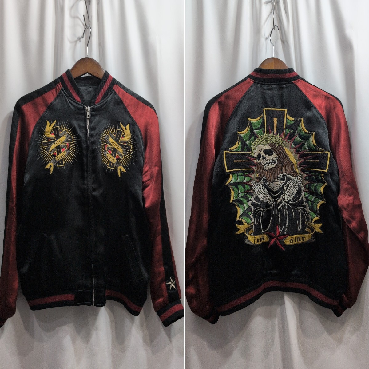 > JUNK STAR ジャンクスター レーヨン 刺繍 スカジャン M メンズ リバーシブル ジャケット ブルゾン スカル/東洋/絡繰魂/抜刀娘/花旅楽団