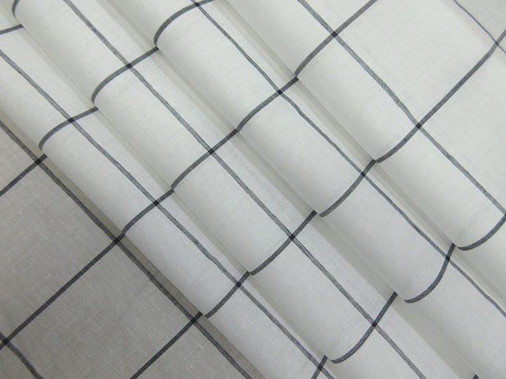 - 綿90 麻10 平織 先染 格子 透過感 シャツ ワンピース 薄地 巾106cm 長4m オフ白 [B850]
