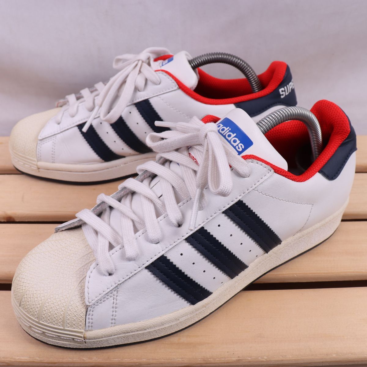 - z2465 アディダス スーパースター US7 1/2 25.5cm/白 ホワイト 紺 ネイビー 赤 レッド adidas SUPERSTAR メンズ スニーカー 中古
