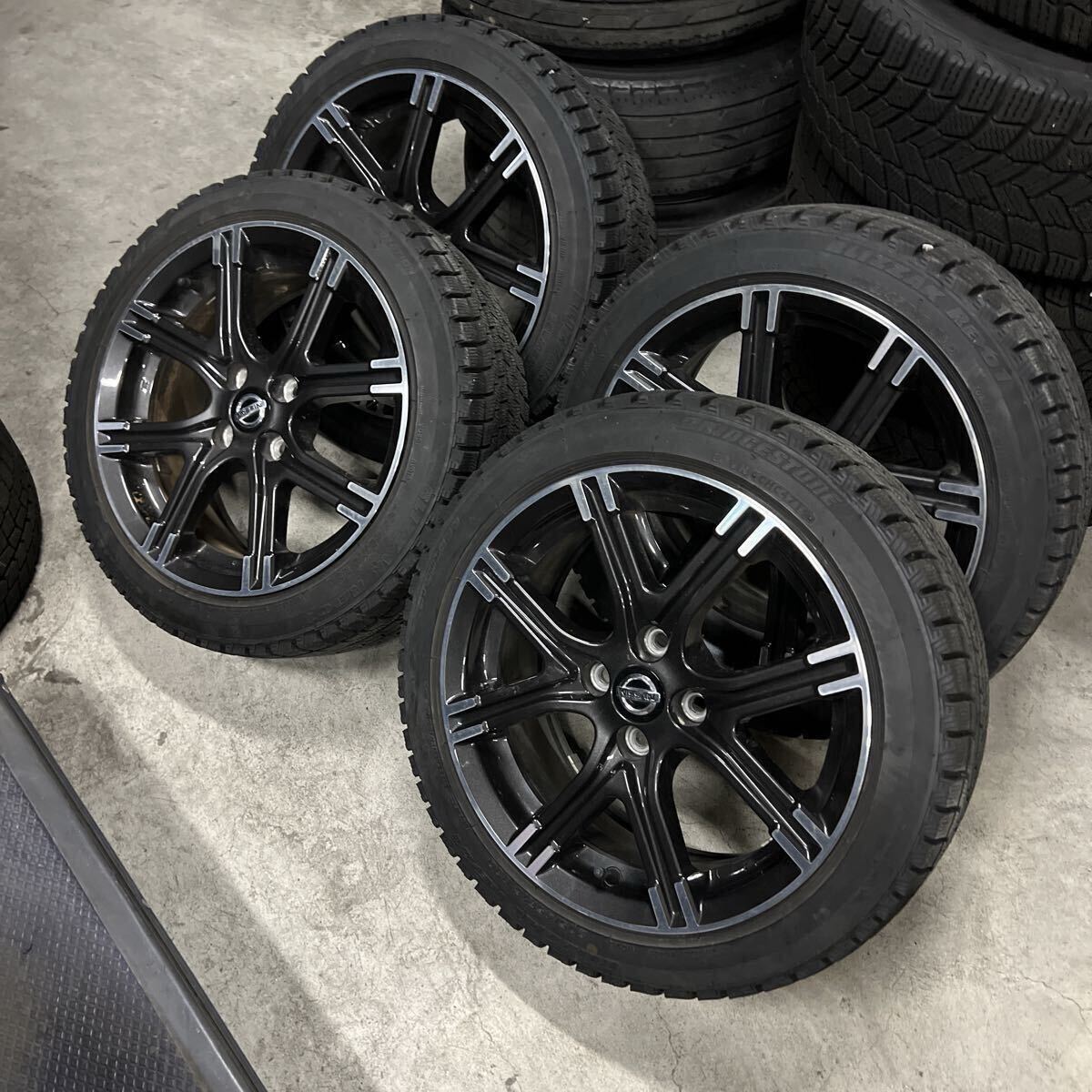 - 日産マーチニスモS純正アルミホイール16インチスタッドレスタイヤブリヂストンブリザックレボ1 205/45R16 2019年製造バリ山バリミゾ美品