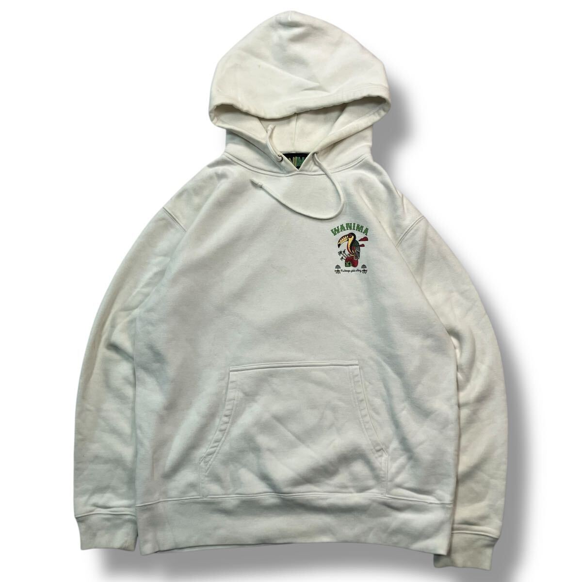 - (TS1004) WANIMA ワニマ プルオーバーパーカー 両面プリント 紐付き ポケット ヘビーオンス ホワイトL