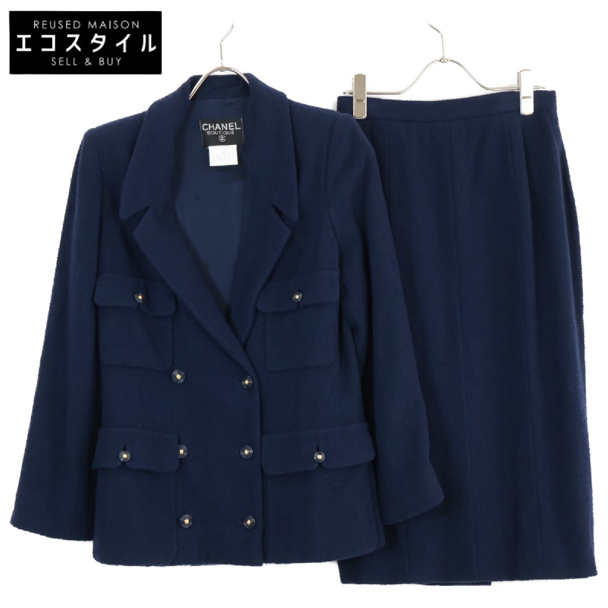 - CHANEL シャネル P05801 V04346 95A ココマークボタン ツイード ダブルブレスト セットアップ 40 ネイビー レディース