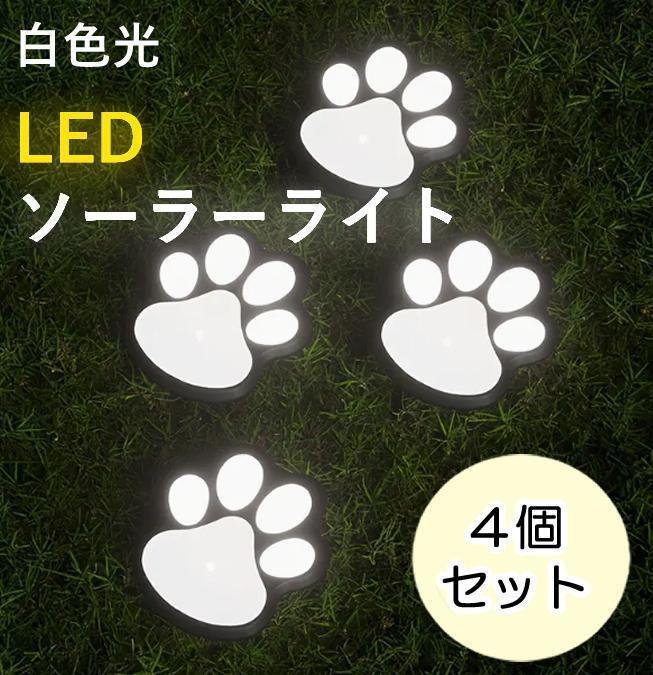 - 【4個入り】白 LED ガーデンライト 肉球 ソーラーライト 自動点灯 防水
