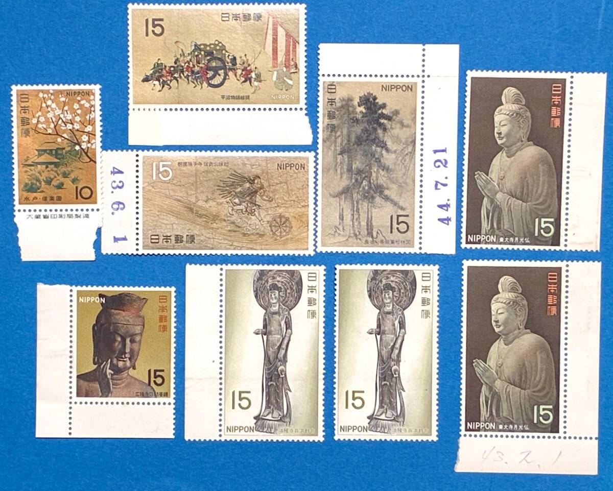 - 朝護孫子寺信貴山縁起 平治物語絵詞 広隆寺弥勒菩薩 長谷川等伯筆松林図 東大寺月光菩薩 法隆寺百済観音 水戸・偕楽園 切手 未使用