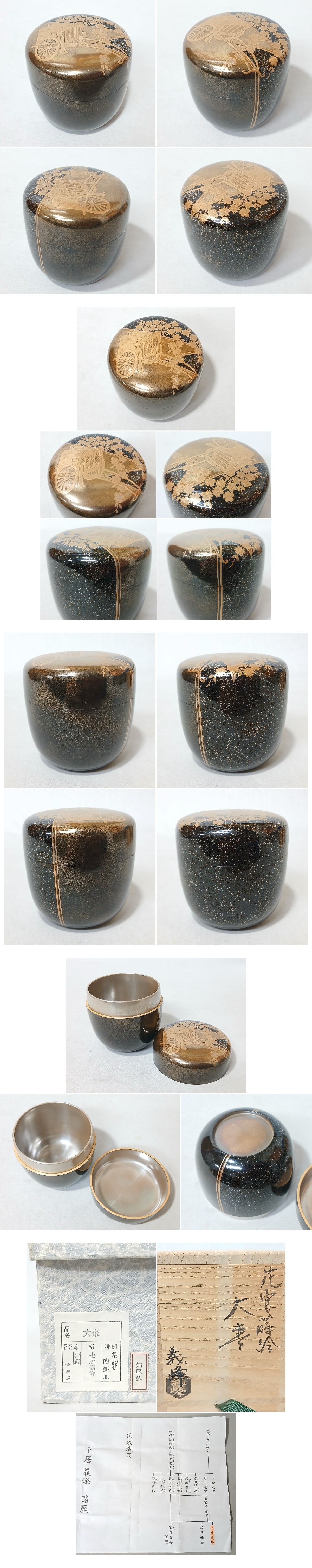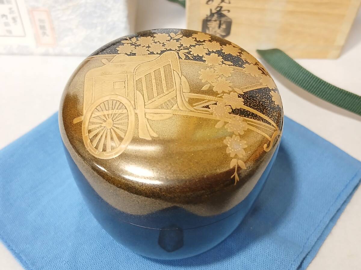 - ★【茶道具整理品】 土居義峰 作 花宴蒔絵 内銀地 大棗 四方桟桐共箱・共布 薄茶器 棗 中村宗哲 / 表千家 裏千家 茶道 ◆