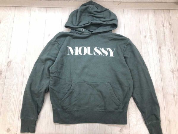 - マウジー moussy ストリートカジュアル古着 ロゴプリント プルオーバー スウェット パーカー レディース コットン100% 裏起毛 F 緑