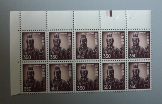 - 大蔵銘より 観音菩薩 350円 カラーマーク上10枚ブロック 未使用 美品 MB-60-7s
