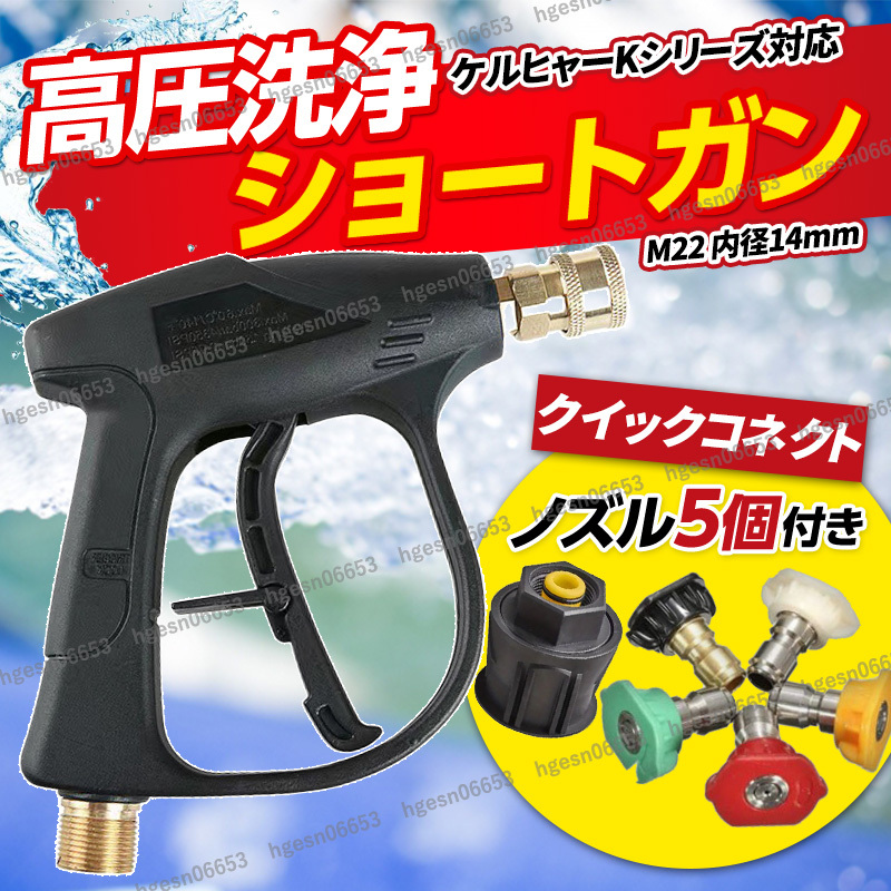 > ショートトリガーガン クイックコネクト ケルヒャー高圧洗浄機互換 ウォッシャーガン 5段階ノズル 洗車 階段 外壁 ベランダ メンテナンス