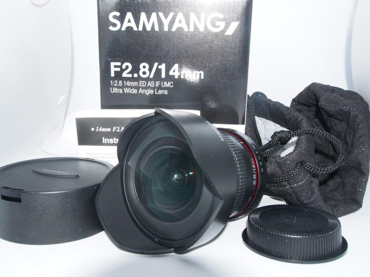 - 52★新品未使用級★元箱★純正前後キャップ・ポーチ★完動品★SAMYANG 14mm F2.8 ED AS IF UMC キャノンEFマウント for CANON EF#230624