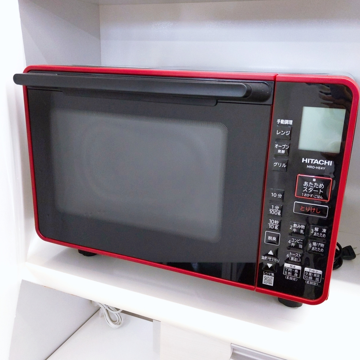 - 日立 オーブンレンジ ブラック×レッド 2022年製 MRO-HE4Y〇YR-53511〇【中古品】