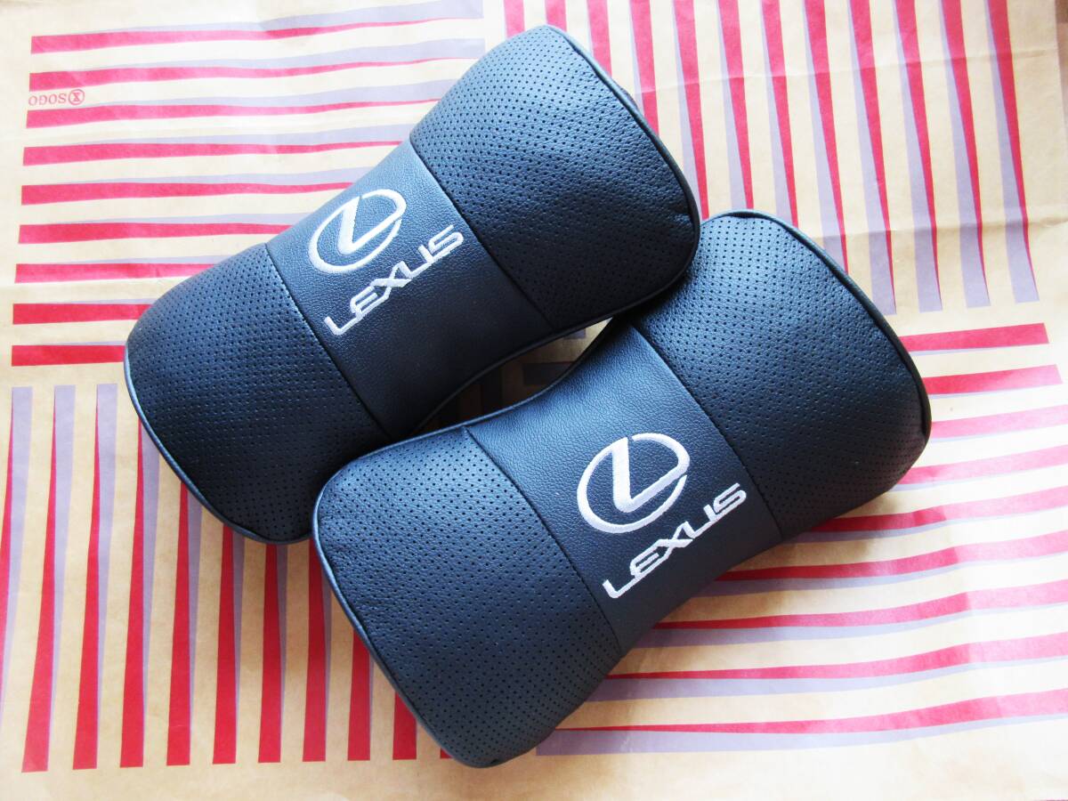 - 新品 レクサス 首枕 2個セット LEXUS ロゴ刺繍 本革レザー 自動車 ネックパッド 頚椎サポート 2,800円均一セール