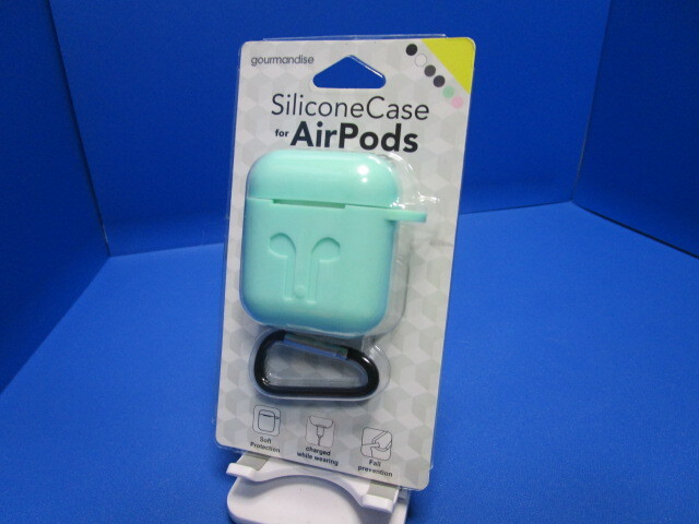 - グルマンディーズ AirPods (第2/1世代) 対応 シリコンケース ライトグリーン カラビナ付属 arp-01lgr ★u
