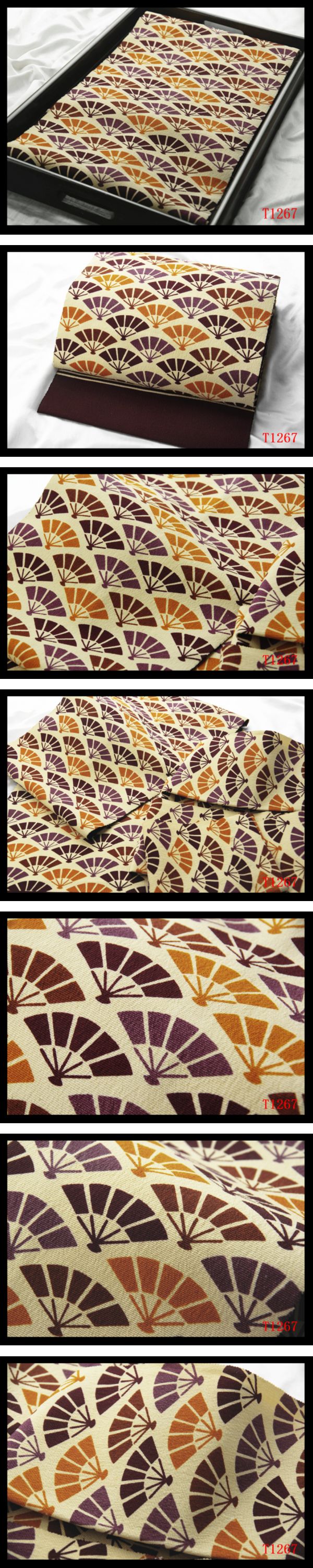 > 蔵【T1267】厳選美品 染帯 扇面紋 蒸栗色地 気品豊かに 高級美術名古屋帯 ◇検簪着物袋帯和装小物帯締め