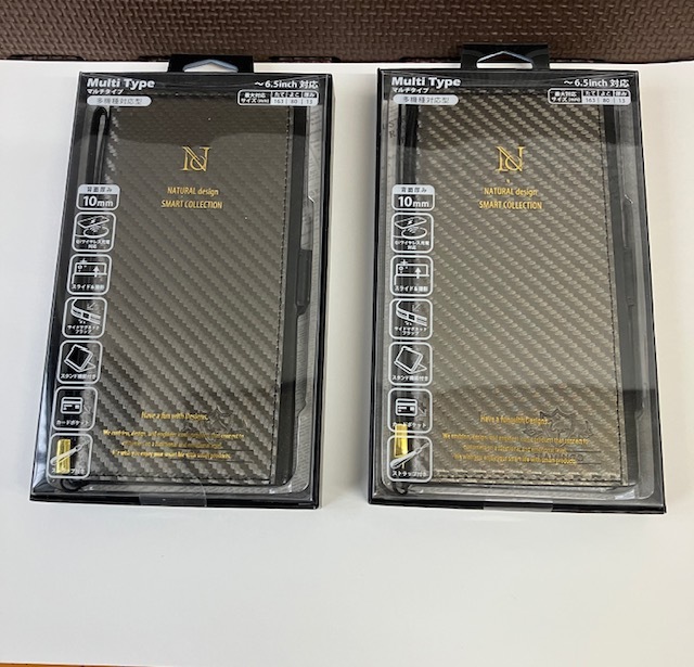 > [NATURAL design] FLAMINGO マルチタイプ手帳型スマホケース 多機能対応型 ~6.5inch 対応 ストラップ付 カーボングレー 2個セット
