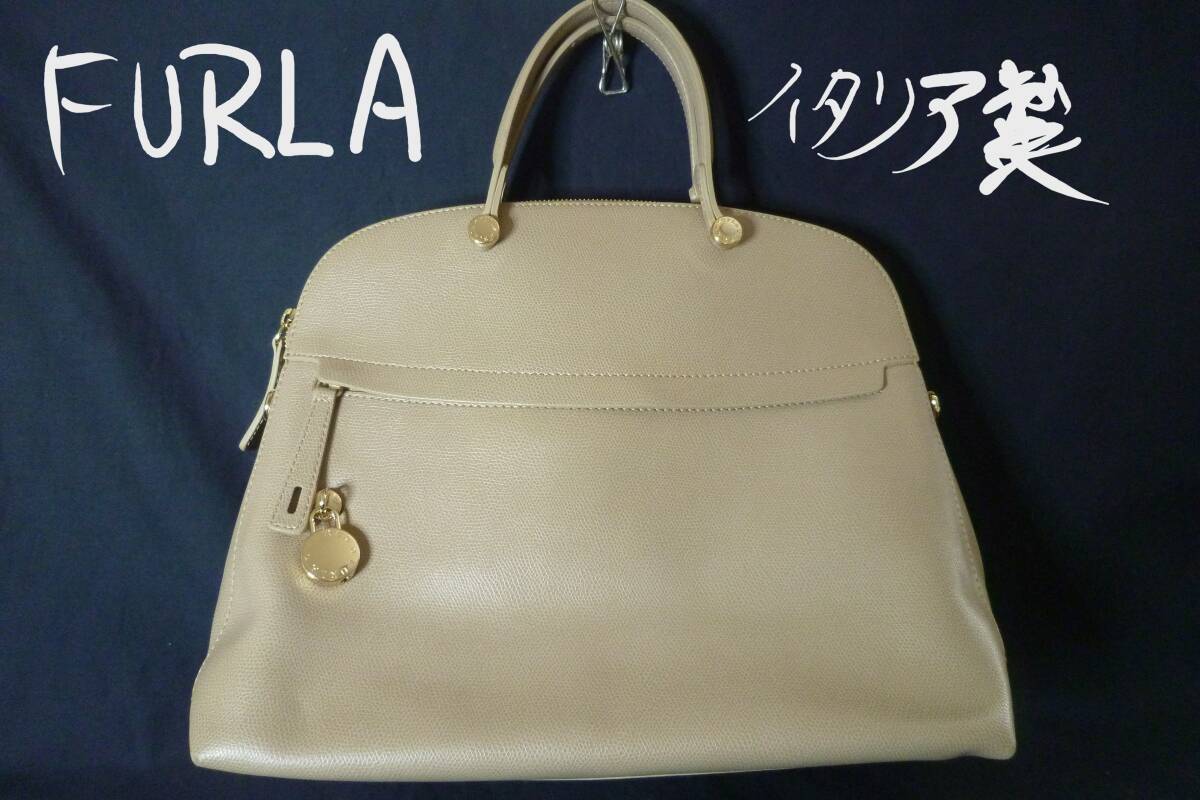 - 新品 フルラ FURLA パイパー ハンドバッグ イタリア製 ショルダーバッグ A4可 ベージュ グレージュ