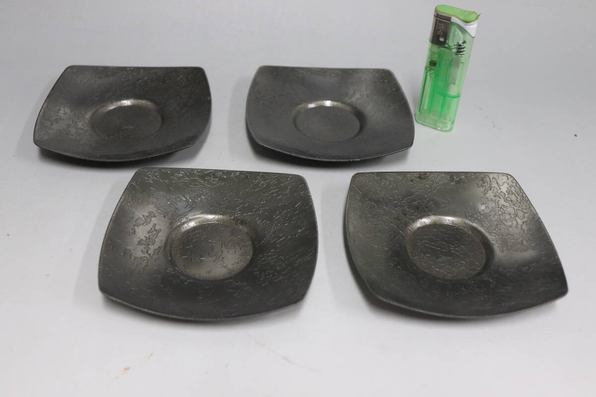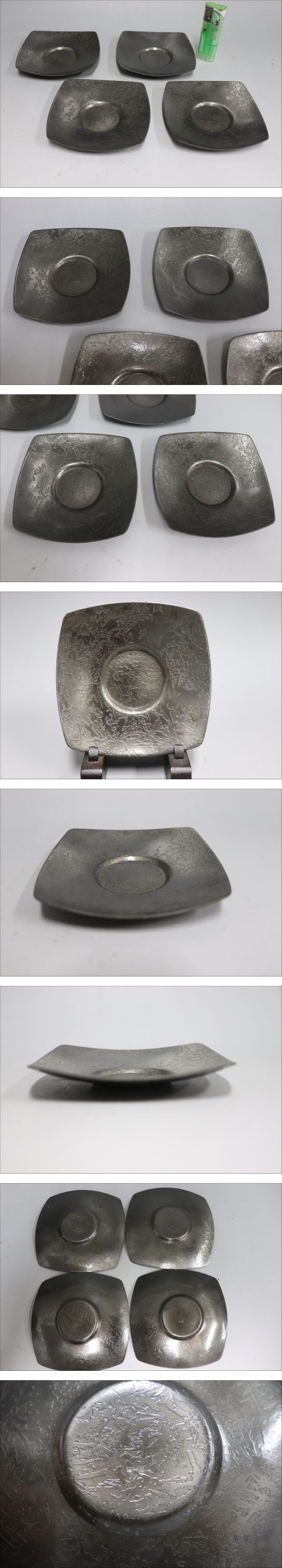 - 時代 純銀製 茶托 四枚 437g 古美術品 (材質不明)