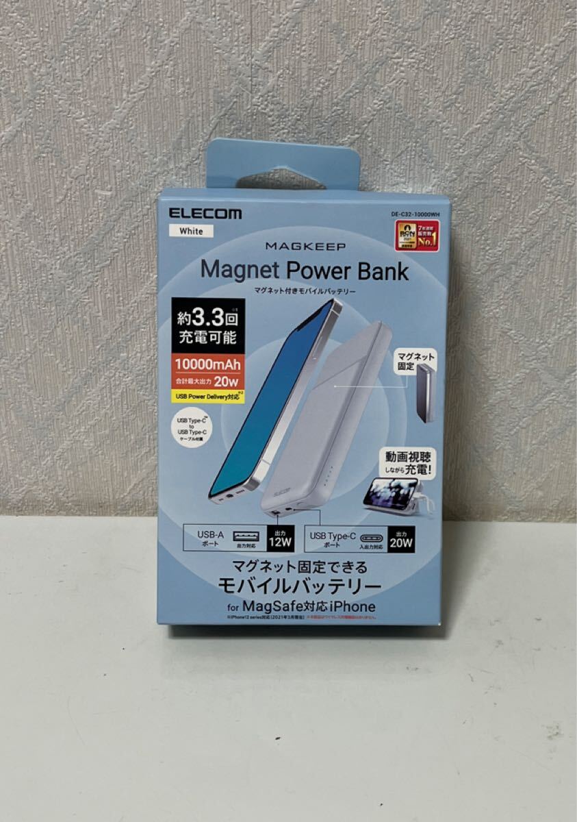- 710i0501 エレコム モバイルバッテリー 10000mAh 大容量 マグネット ( USB PD対応 ) Type-C×1 / USB-A×1 PSE認証 ホワイト