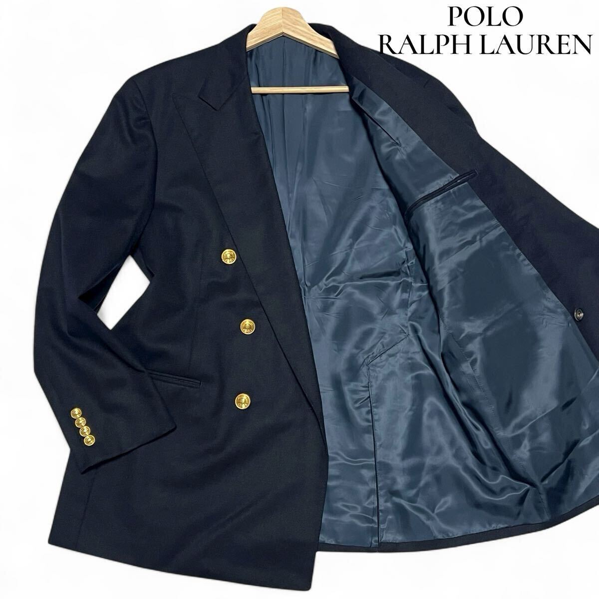 - 未使用級◎XLサイズ位!!ポロラルフローレン【光輝く金ボタン】POLO RALPH LAUREN 紺ブレ ダブル ブレザー ジャケット ネイビー◎メンズ