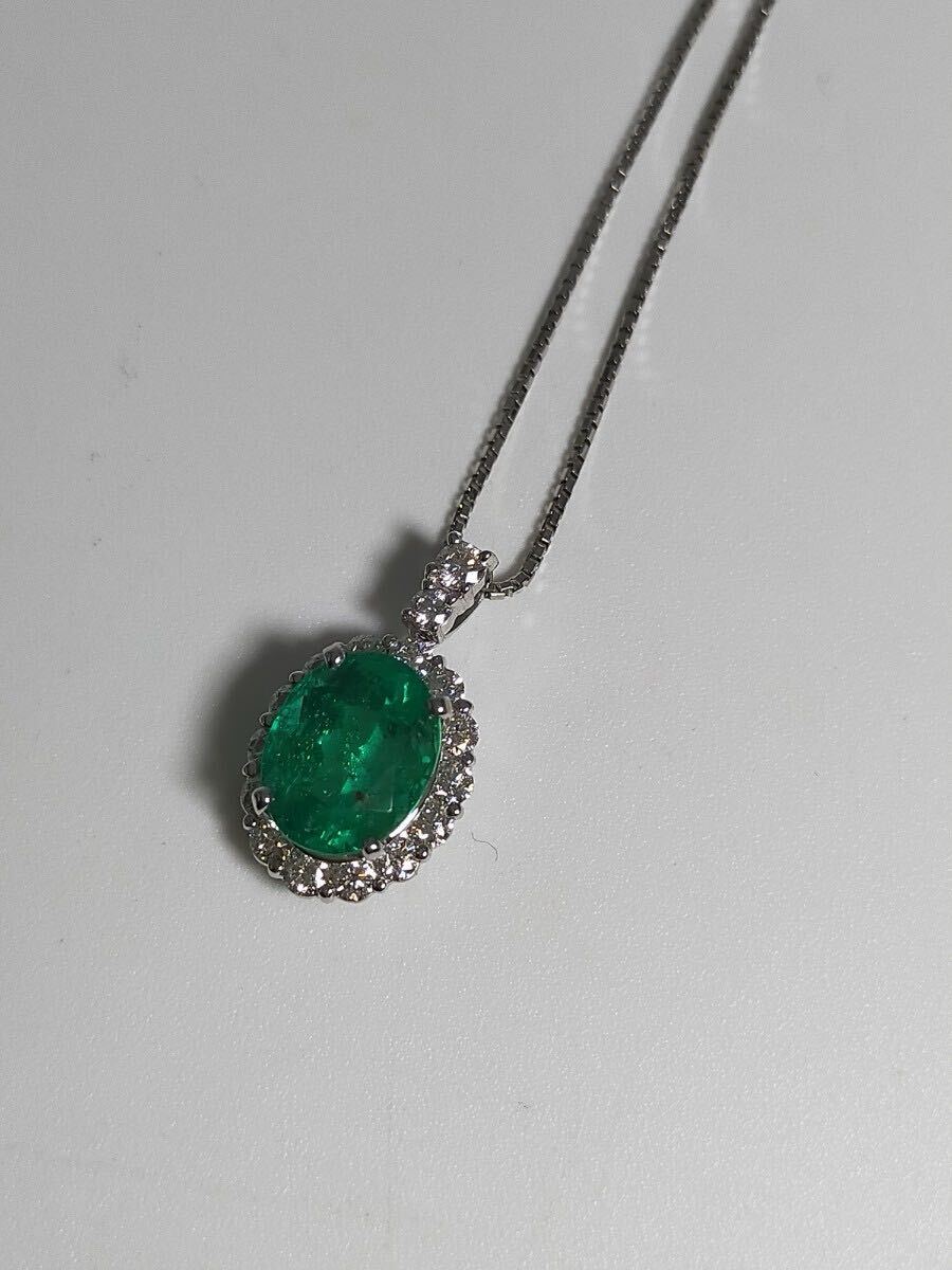 - 濃色 コロンビア産 天然エメラルド 2.88ct プラチナネックレス EMERALD COLOMBIA オーバル 鑑別書付 祖母緑 ペンダント natural 3ct oval