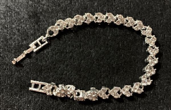 - 【Premio Fortuna】水晶のハート形ラインストーンブレスレット シルバーフィルド 内径約17センチLb7ZFmQ8 034