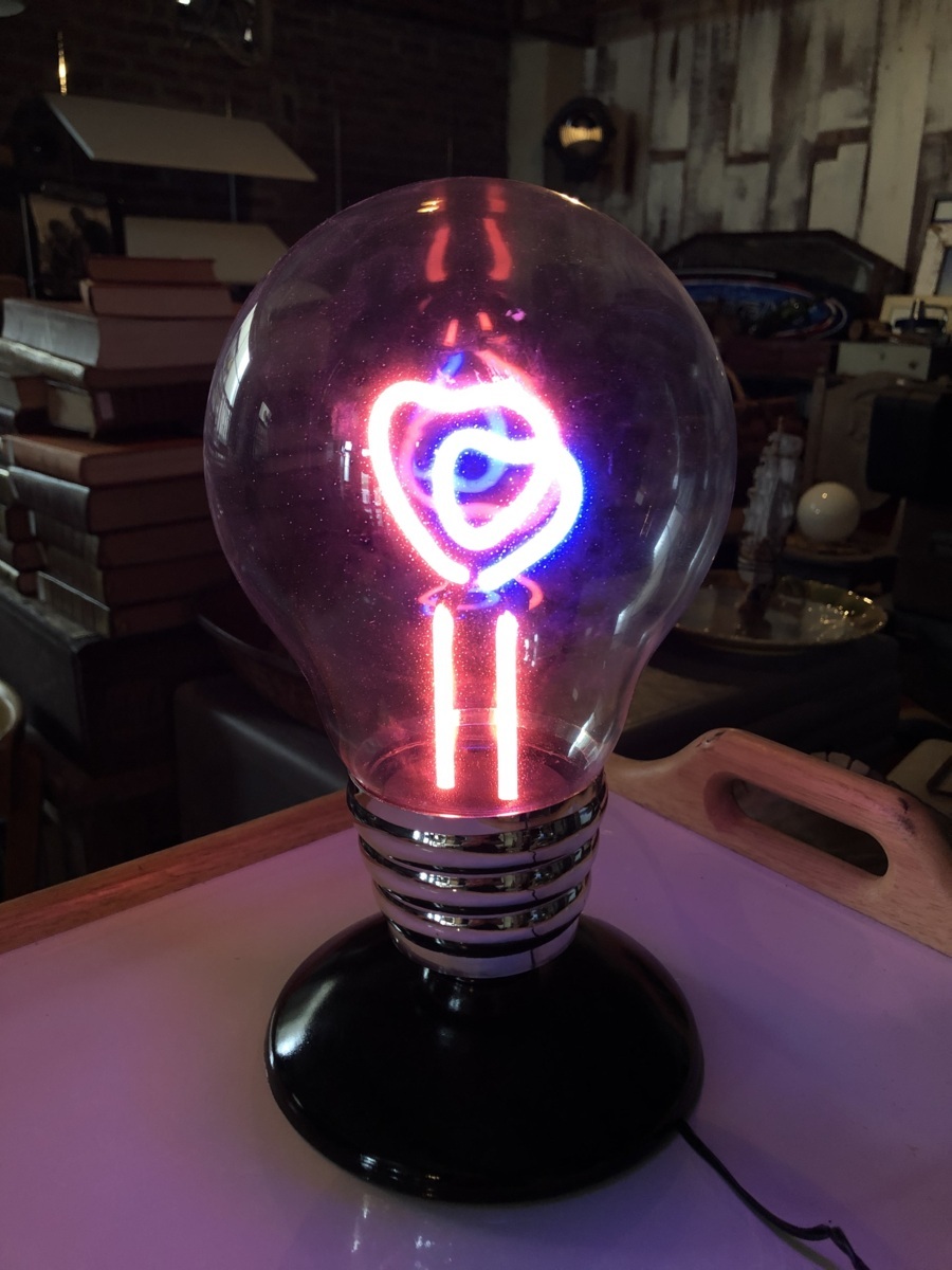 - 2331 ヨーロッパ買付け 現行品 ライト ランプ オブジェ インテリア 卓上ランプ ポップ 電圧変換器付き 箱付き 高さ28cm 直径15cm bnn
