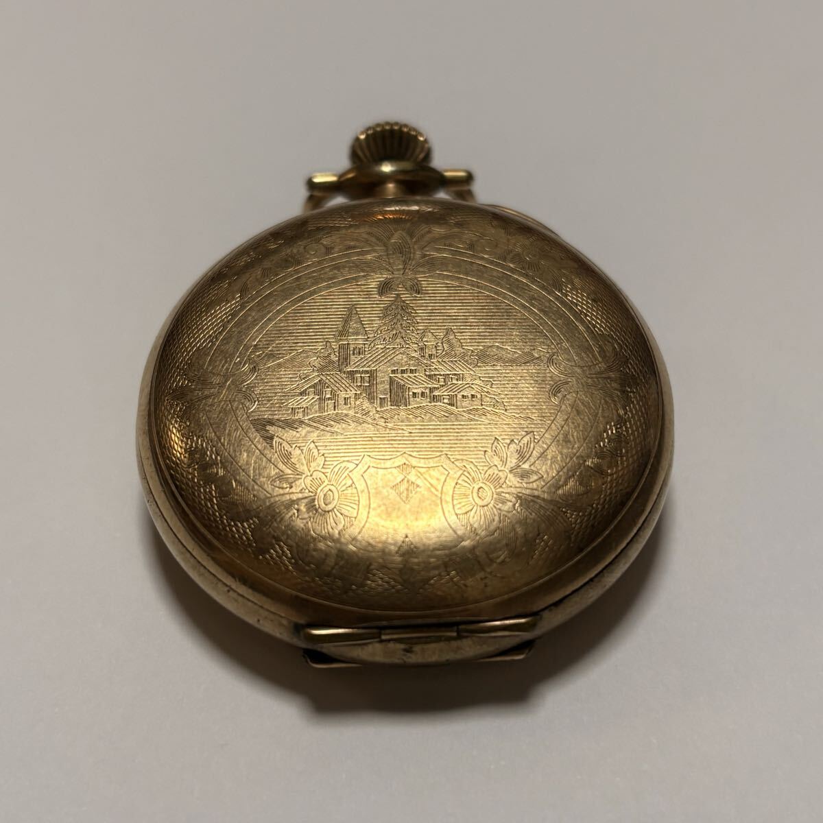 > ELGIN エルジン K10 金無垢 10金 懐中時計 細密 彫金 花鳥図 アンティーク ヴィンテージ ゼンマイ不良 ジャンク 約58.4g