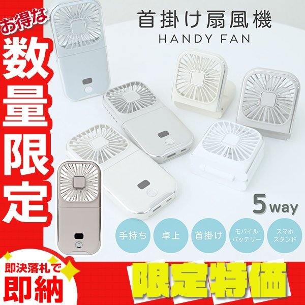 - 【限定セール】2025年 首掛け 扇風機 5way ハンディファン 携帯扇風機 折りたたみ 充電式 モバイルバッテリー スマホスタンド モカトープ