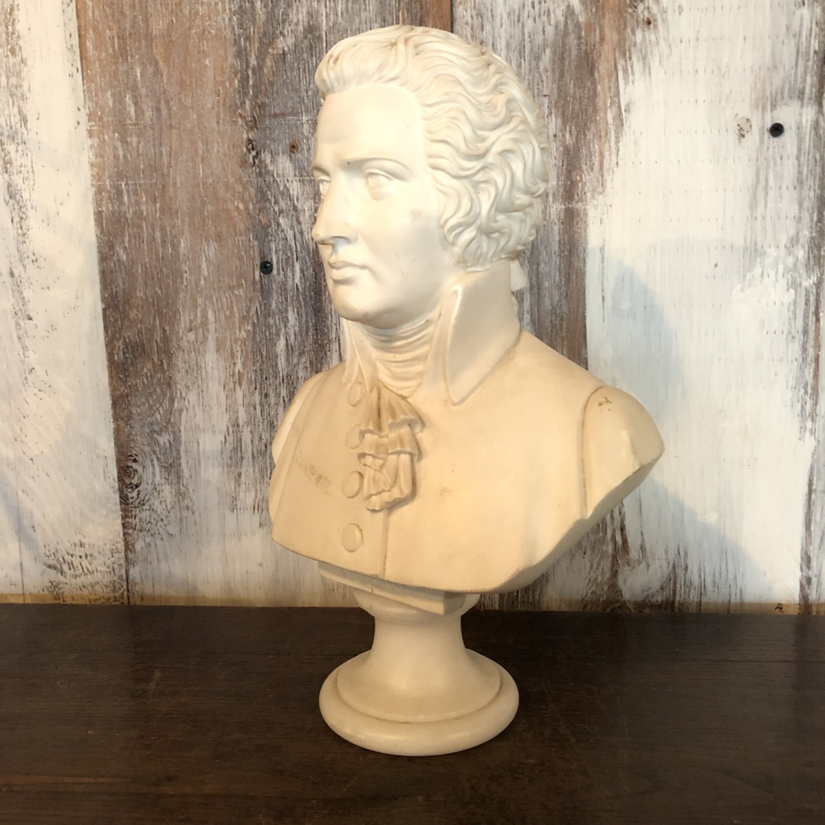 > 2630 ヨーロッパ買付け アンティーク モーツァルト オブジェ 胸像 彫刻 モダン 男前系インテリア 高さ12.5cm 幅21cm 奥行き12cm baa