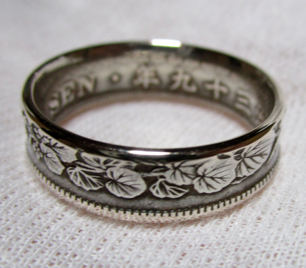 - 【s329】 コインリング☆旭日50銭 銀貨☆ハンドメイド 25号 明治三十九年