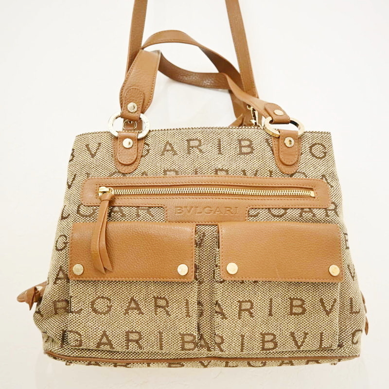 - BVLGARI ブルガリ ロゴマニア マキシレッタレ キャンバス/レザー 2WAY トートバッグ ショルダーバッグ ベージュ/チャ T08-k114