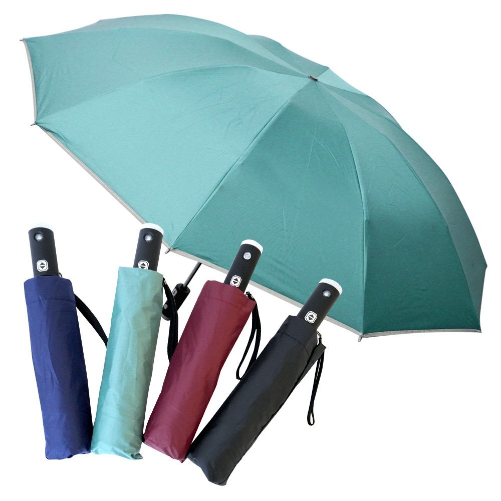 - 自動開閉傘 LEDライト 雨傘 日傘 折りたたみ傘 直径105cm アルミ製 10本骨 晴雨兼用 高密度撥水 UPF50+ UVカット グリーン XH772G