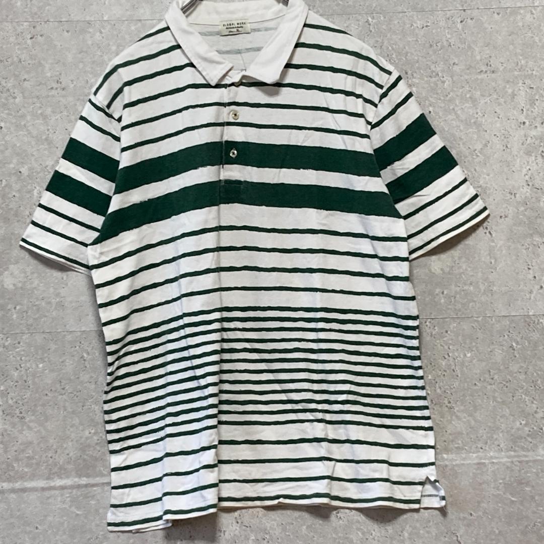 - グローバルワーク(XL)ボーダー半袖ポロシャツ*綿100%*伸縮性*カジュアル