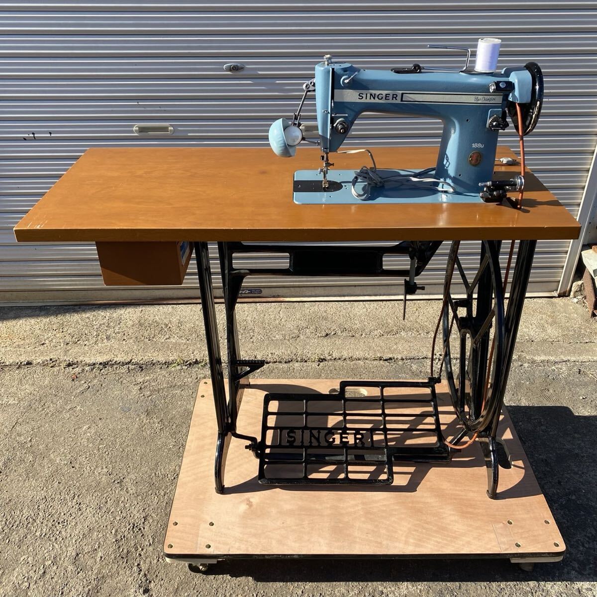 - M0929708K【希少】職業用足踏みミシン SINGER シンガー 188u ブルーチャンピオン ミシン 手工芸 ハンドクラフト シンガー 中古品 現状品