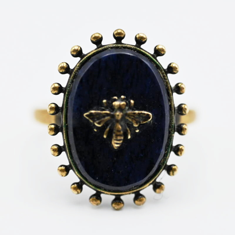 > T05-k001 Dior ディオール ミツバチモチーフ アンティーク メタル/デュモルチェライト リング M (11号) ゴールド