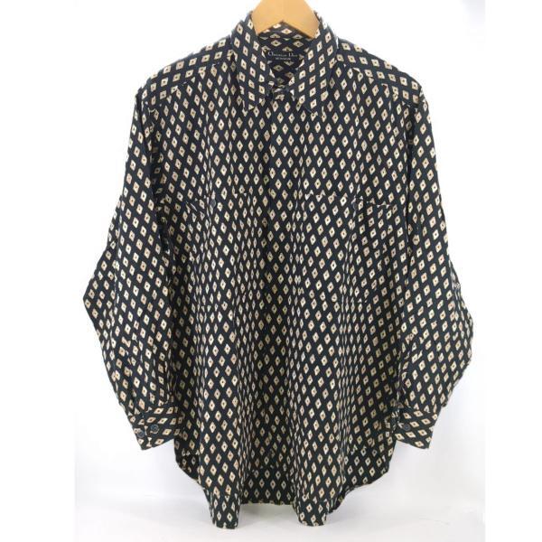 - 【中古】 Christian Dior MONSIEUR 長袖シャツ ブラック サイズL 総柄 ADS-630834 クリスチャンディオール ムッシュ? 古着 ◆2003