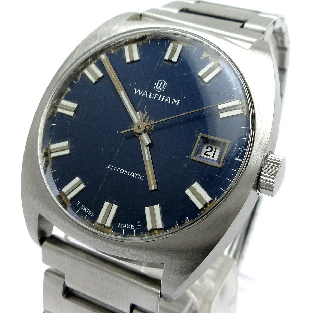 > ウォルサム Cライン オートマチック メンズ ネイビー デイト 時計 WALTHAM 自動巻き 稼動品 ヴィンテージ