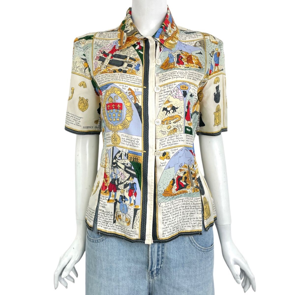 - レア 美品 HERMES エルメス 半袖シャツ モンサンミッシェル MONT SAINCT MICHEL シルク100% マルチカラー AH3- 4 1006-8