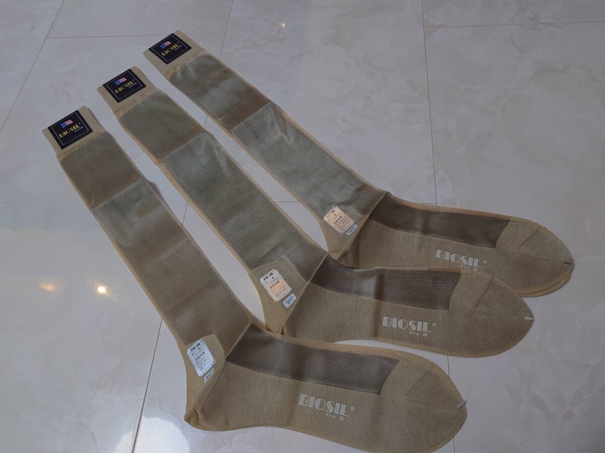 - BIOSEL ナイロン ハイソックス ハイゲージ 3足 光沢ベージュ シースルーストッキング 高級靴下