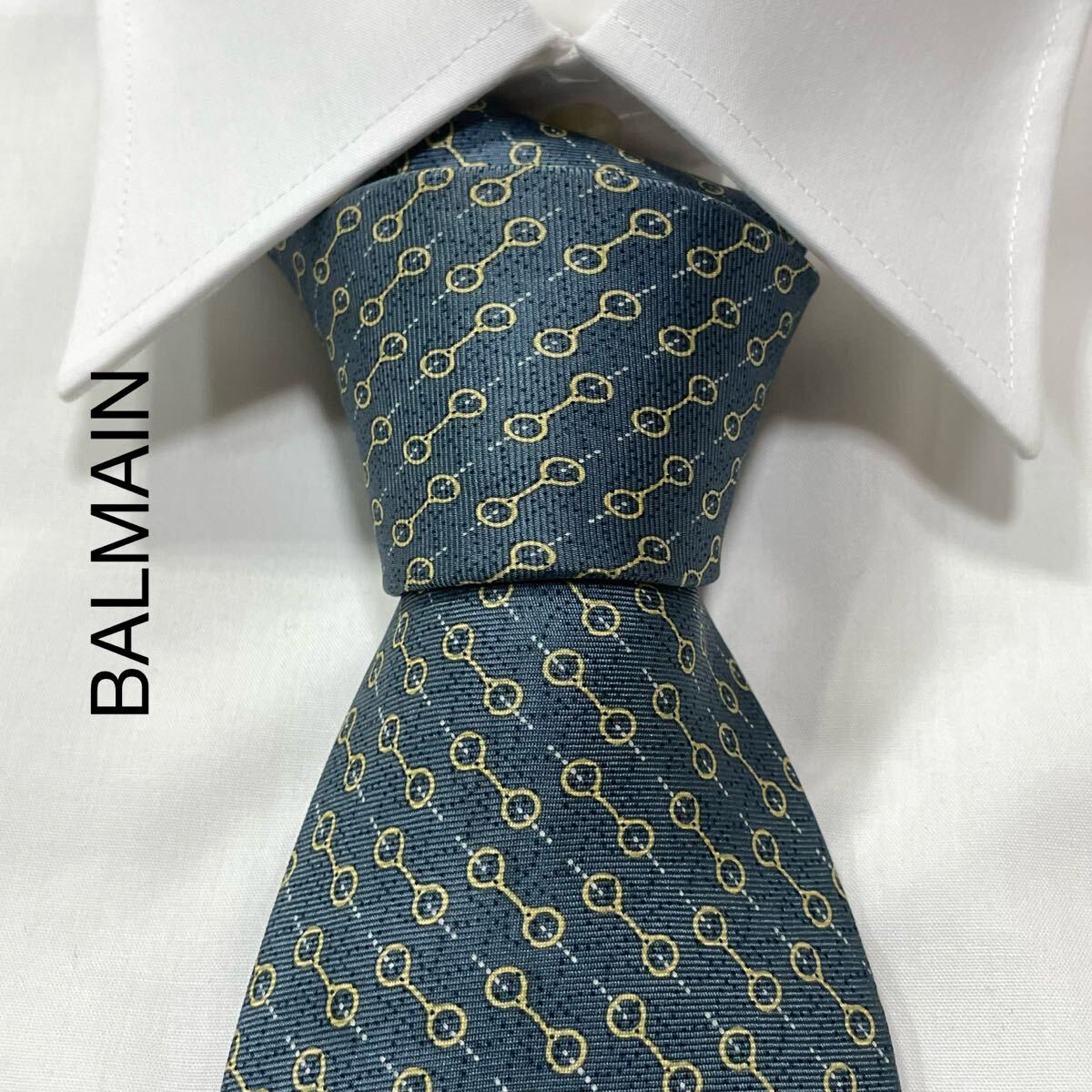 - BALMAIN バルマン パターン柄 ストライプ シルク ネクタイ フランス製 ブルー TG2928