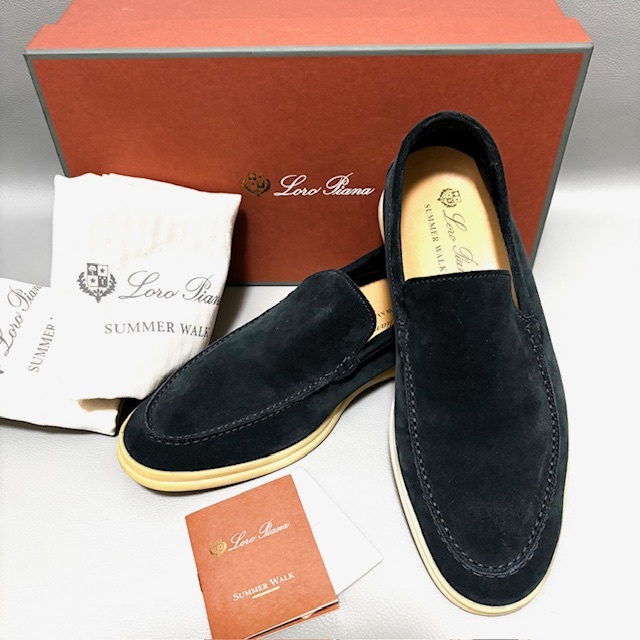 > Loro Piana made in italy メンズ デッキシューズ モカシン クラシックブルー 40 1/20(日本サイズ25.5㎝) 美品 袋2個・ 箱・説明タグ付き