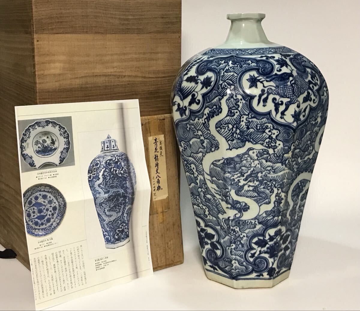 - 元朝期 染付龍文八角瓶唐物 中国美術 箱付