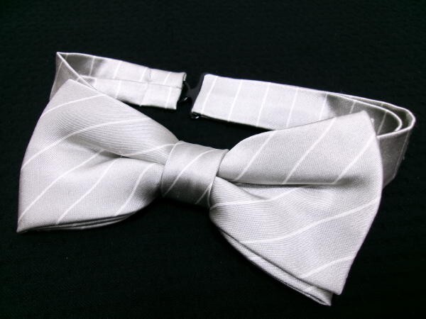 - 新品★TAILOR FIELDS テーラーフィールズ★日本製 シルク 蝶ネクタイ★シルバー ストライプ