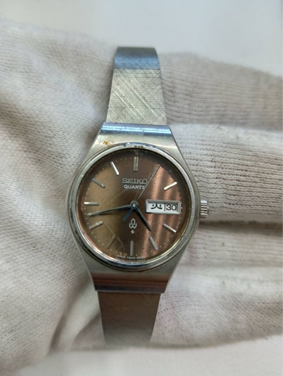 - 【中古品】SEIKOセイコー 腕時計 7903-0020 クオーツ シルバー ステンレス 茶ブラウン文字盤 時計 現状品