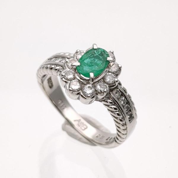 > リング 11号 エメラルド 0.51ct 鑑別書 プラチナ Pt900 7.4g ダイヤ 0.56ct 中古 磨き済 指輪 ◆2008