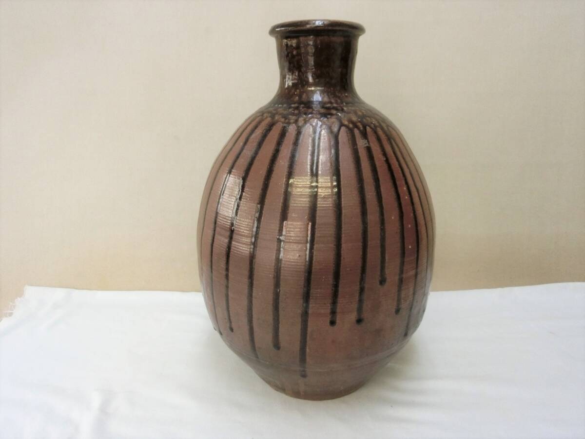 - インテリア!【徳利 大徳利 瀬戸 化粧流れ釉 骨董 酒器】◆コレクション 鑑賞陶磁器 収集 飾り映えする大きさ